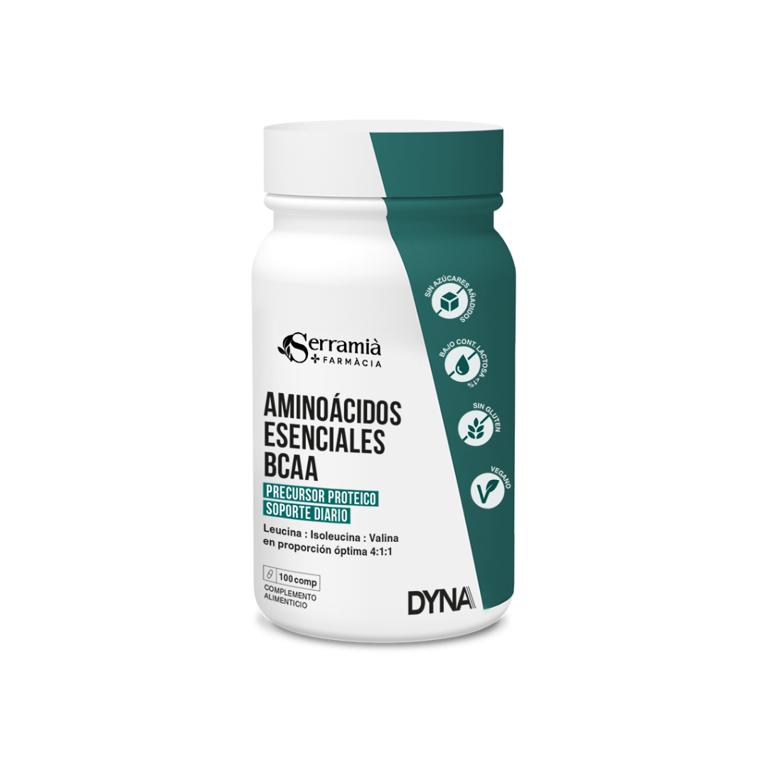 Descubre los beneficios de Aminoácidos Esenciales BCAA, un complemento alimenticio de calidad premium que ayuda a reforzar tu rutina de belleza, mejorar la energía y el rendimiento físico. Con una proporción óptima de Leucina, Isoleucina y Valina (4:1:1), además de vitamina B6, es ideal para deportistas que quieran mejorar su masa muscular, proporciona energía de manera instantánea. También es perfecto para personas mayores, en menopausia o con carencia protéica, veganos y como suplemento de belleza proporcionando firmeza y un cabello y uñas más fuertes y brillantes. ¡Haz de tu cuerpo una obra de arte con Aminoácidos Esenciales BCAA!
