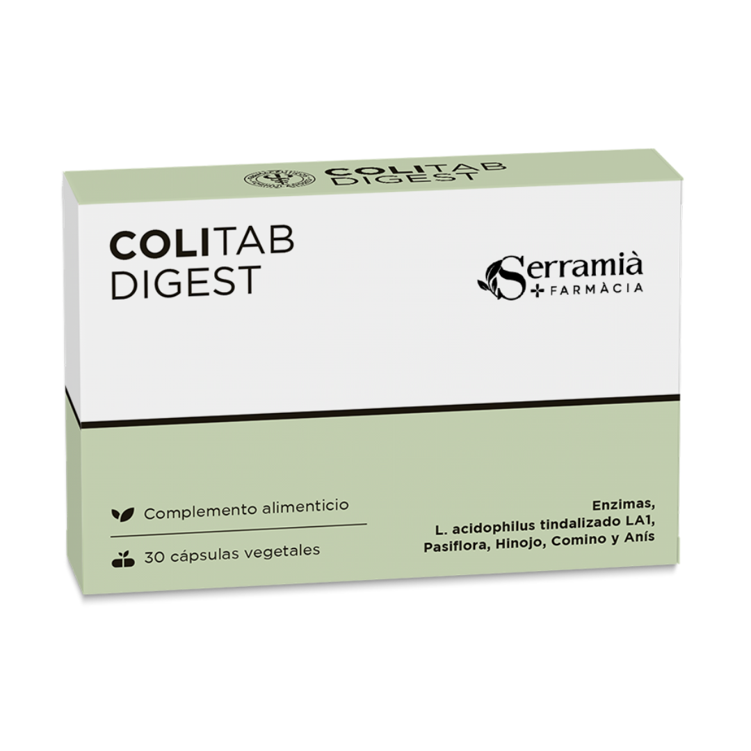 Experimente una mejor digestión con ColiTab Digest. Creado con una mezcla de comino, hinojo y anís, este complemento alimenticio también contiene enzimas y Lactobacillus acidophilus tindalizado para promover una flora intestinal saludable. Reduzca los gases, la hinchazón y la tensión abdominal, y apoye una digestión regular y cómoda. Ideal para personas con trastornos intestinales, síndrome del colon irritable o que deseen mejorar su salud digestiva.