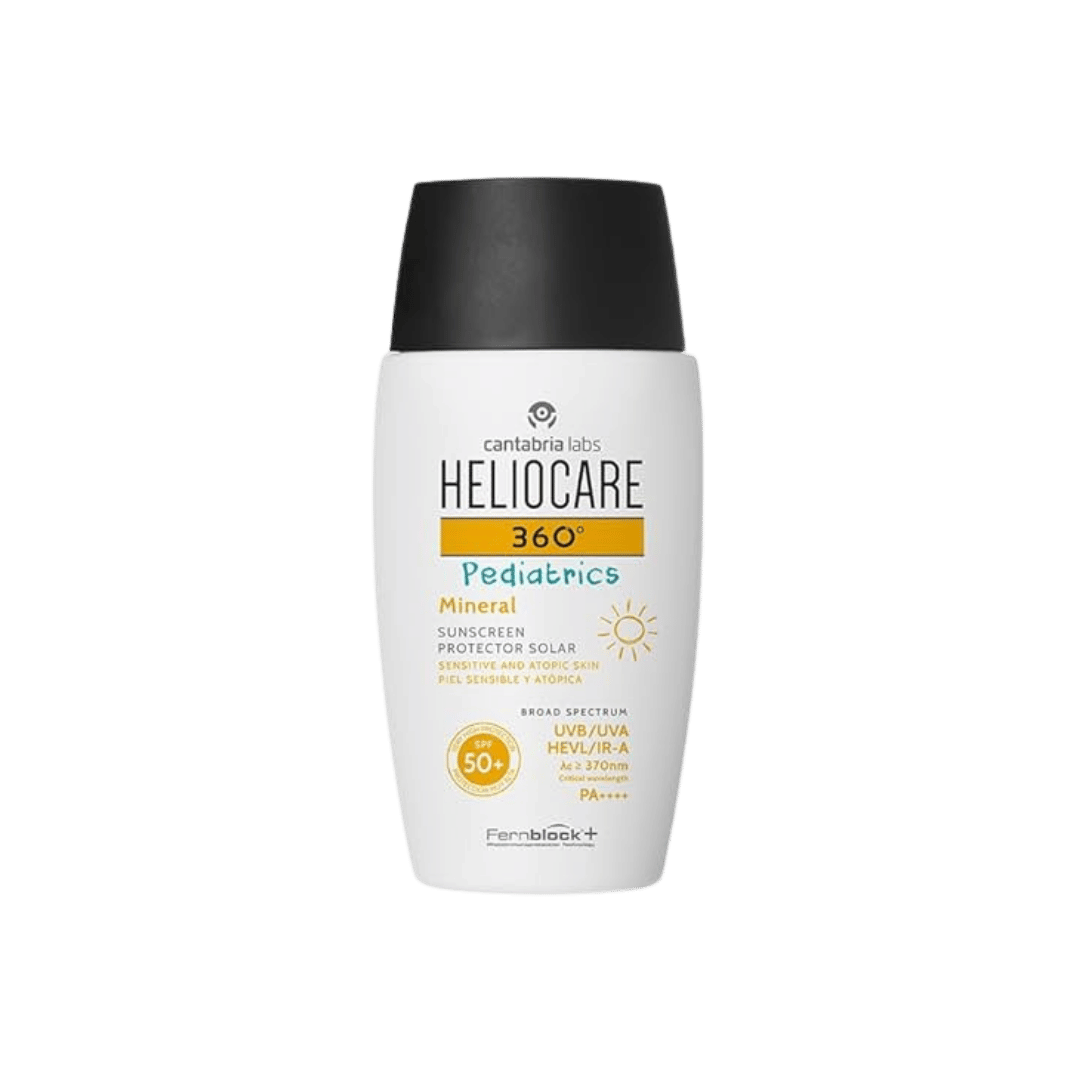 Pediatrics Mineral SPF 50+ ofrece una protección solar avanzada con filtros minerales de alta tolerancia, ideal para pieles sensibles y atópicas desde los 3 meses. Su fórmula ultraligera y no comedogénica hidrata y fortalece la barrera cutánea de los más pequeños, además de ser resistente al agua y a la arena sin irritar los ojos. Con Fernblock®+ y activos reparadores, protege eficazmente contra UVB, UVA, luz visible e infrarrojos, neutralizando y reparando el daño solar bajo control pediátrico, dermatológico y oftalmológico.