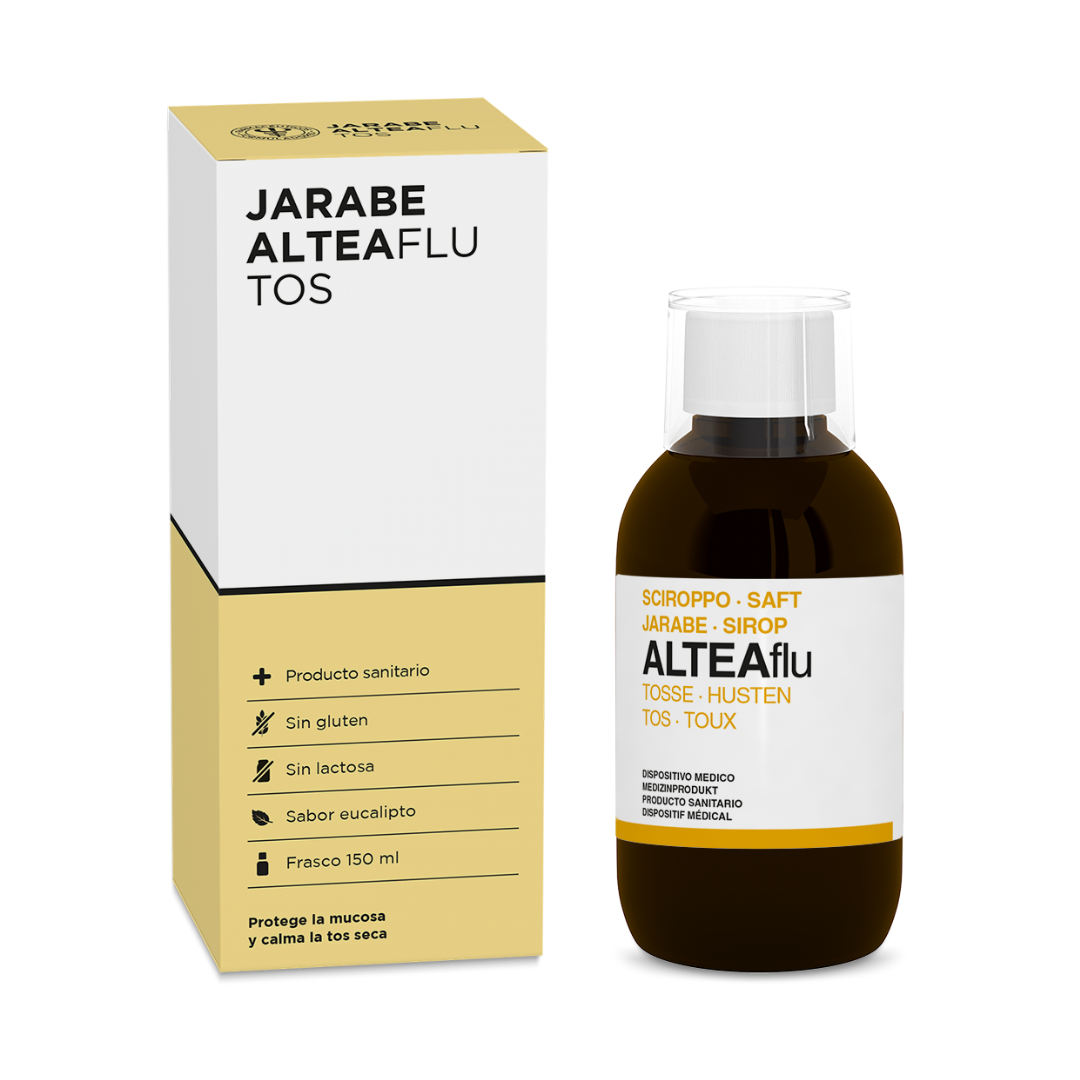 Experimente un alivio instantáneo con Jarabe AlteaFlu Tos. Este producto sanitario está compuesto por Miel y Polisedox®, un complejo innovador que contiene polisacáridos que calman y suavizan las vías respiratorias altas. Ideal para la tos seca, resfriados e irritación en la cavidad oral. Tomar 10 ml de dos a cuatro veces al día. ¡Disfrute de su capacidad emoliente y calmante de manera exclusiva!