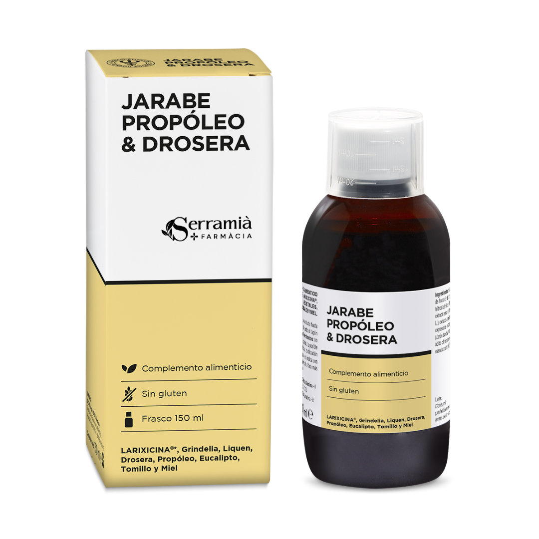 Disfruta de un alivio efectivo y natural con nuestro Jarabe Propóleo y Drosera. Con extracto de Alerce LARIXICINA®, Propóleo y Miel biológica de Acacia, este complemento alimenticio calmará tu tos productiva y fluidificará tus secreciones bronquiales. Toma de 5 a 10 ml, de 1 a 3 veces al día, y siente cómo calma tu garganta. Agitar antes de usar. Incluye tapón dosificador para mayor comodidad.