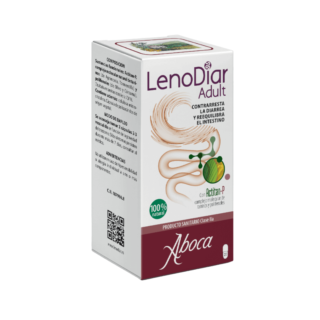 Lenodiar está formulado para reducir eficazmente las evacuaciones diarreicas y restaurar la consistencia natural de las heces, promoviendo un equilibrio óptimo de las funciones intestinales. Su acción sinérgica respeta la fisiología intestinal y mantiene el equilibrio de la flora bacteriana, evitando el estreñimiento y favoreciendo un bienestar digestivo integral.