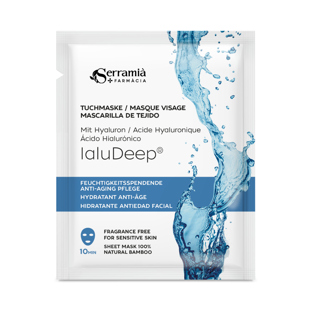 La mascarilla IaluDeep Tejido es una maravillosa opción para el cuidado facial. Con su tejido de fibra de bambú natural y su concentrado en gel de ácido hialurónico IaluDeep®, esta intensa mascarilla hidrata y regenera la piel en solo 10 minutos. Su acción antioxidante reduce arrugas y contrarresta el envejecimiento, dejando la piel suave, luminosa y descansada. ¡Un tratamiento exclusivo y elegante para una piel radiante!