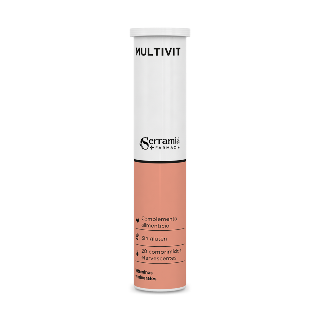 MultiVit Efervescente es un complemento alimenticio multivitamínico con oligominerales que contribuye al metabolismo energético, reduce el cansancio y la fatiga, y protege las células contra el estrés oxidativo. Contiene vitaminas A, D, E y del grupo B, así como hierro, magnesio, cobre, yodo, selenio y zinc para una función inmune normal. Tomar un comprimido al día, disuelto en agua. ¡Revitalízate con MultiVit Efervescente!