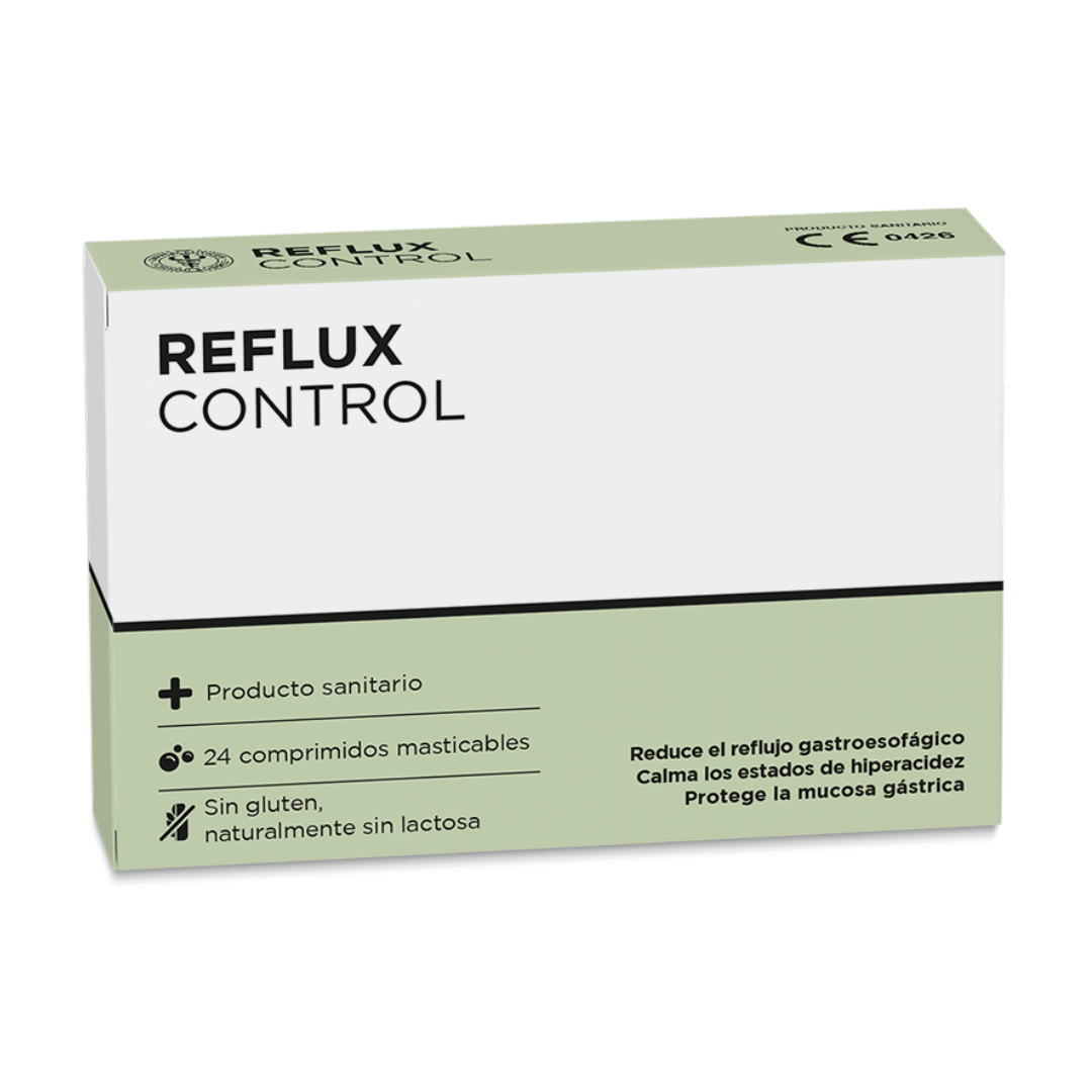 Controla tu reflujo y hiperacidez con Reflux Control. Este producto sanitario alivia el ardor y dolor, ayudando a mejorar tu digestión y protegiendo tu mucosa gástrica. Toma 2 comprimidos después de cada comida principal o según necesidad, masticando o disolviéndolo en tu boca. ¡Siente el alivio y cuida tu salud con Reflux Control!