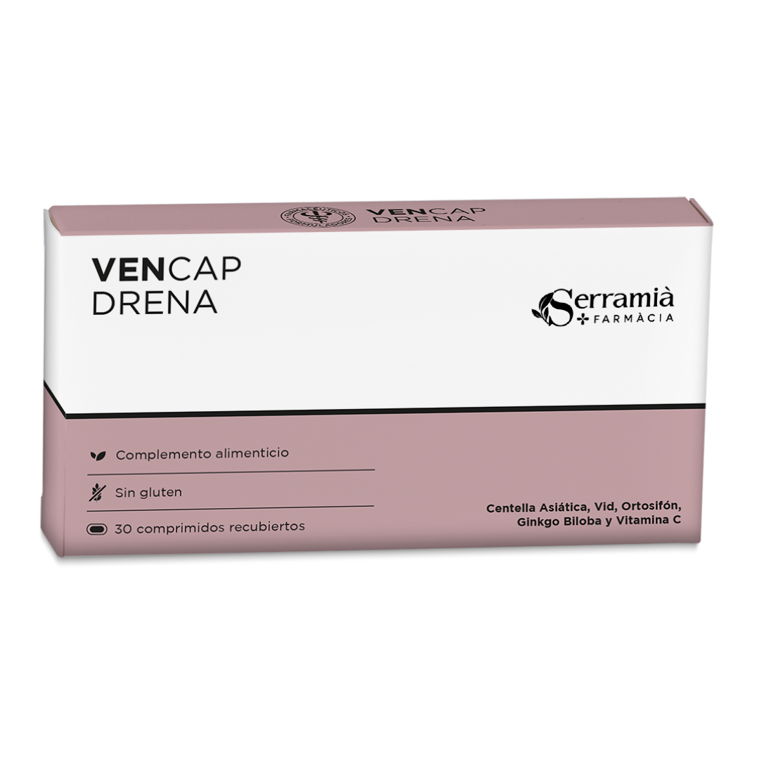 Disfrute de piernas más ligeras con VenCap Drena. Con ingredientes de origen vegetal y vitamina C, este complemento alimenticio protege la microcirculación y alivia la sensación de pesadez en las piernas. También ayuda al sistema linfático y combate la celulitis. Tomar 1-2 comprimidos al día para obtener sus beneficios.
